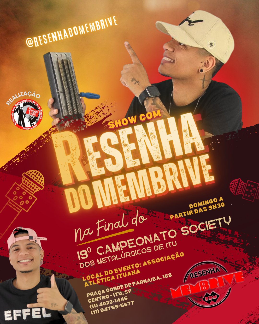 Nesse domingo, 06 de julho, teremos a grande final do 19⁰ Campeonato Society dos Metalúrgicos de Itu ao som de muita música e animação com Resenha do Membrive!