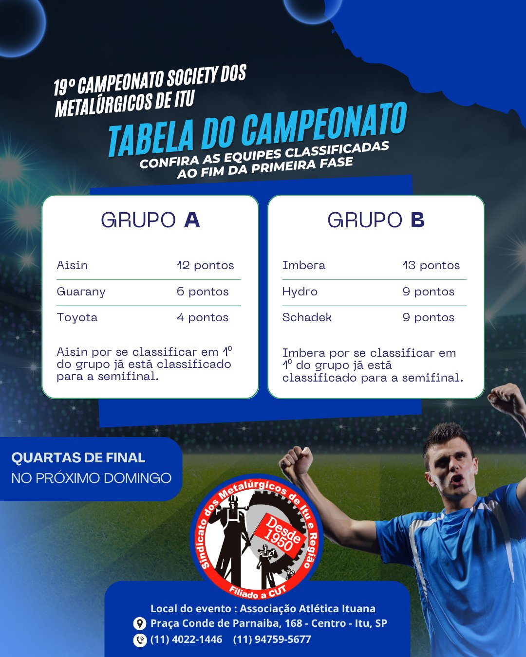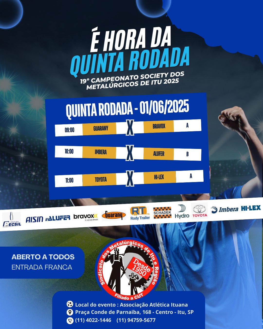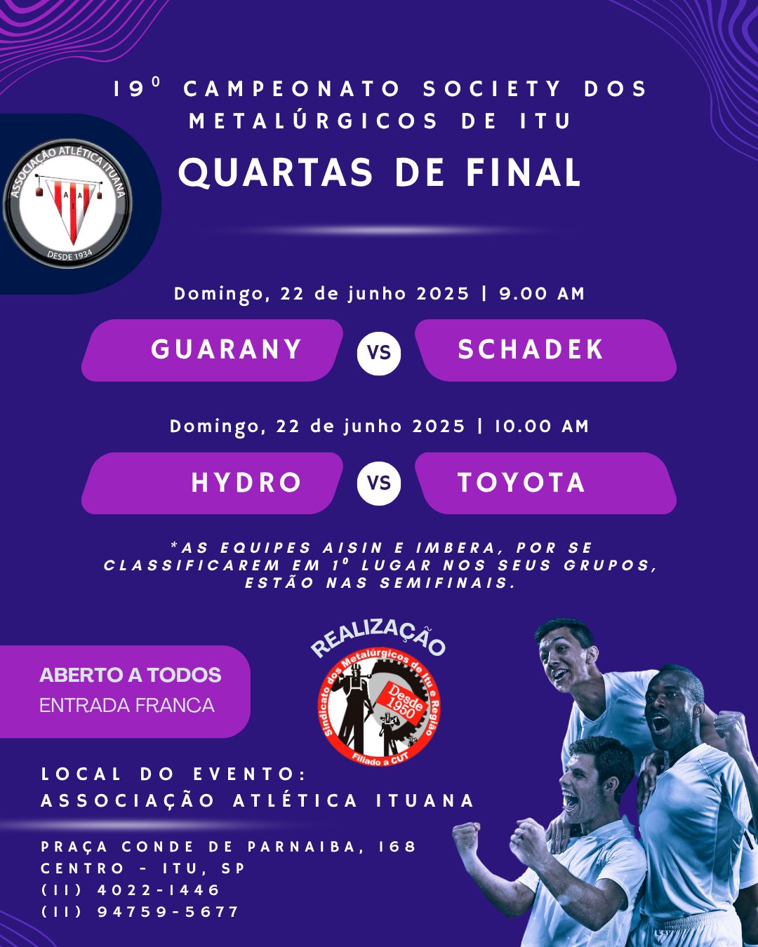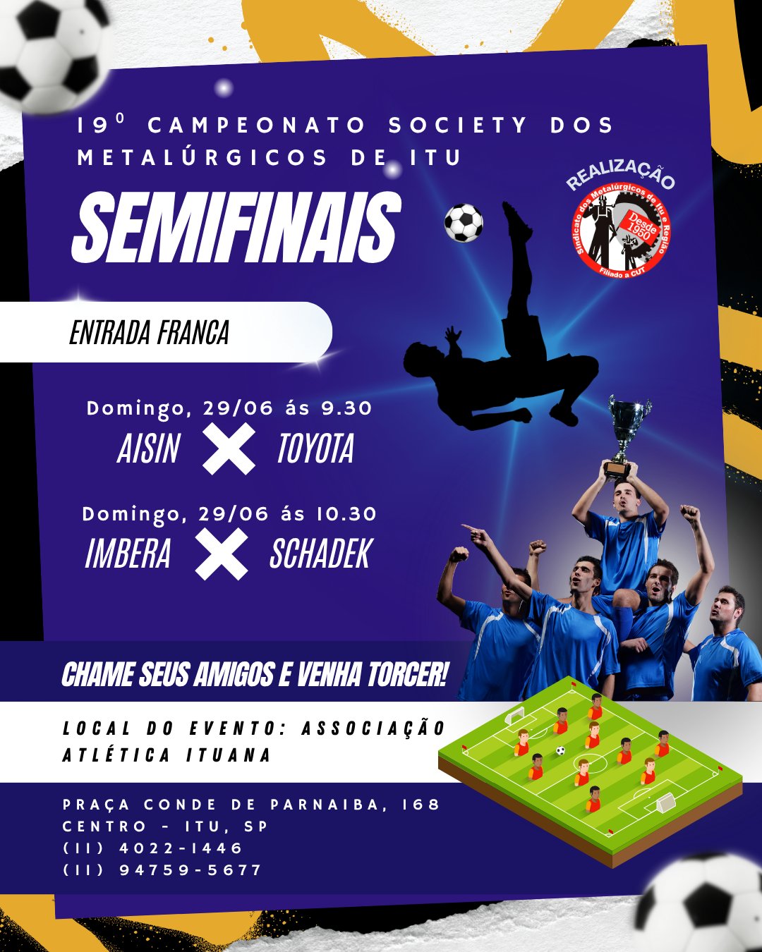 Nesse domingo, 06 de julho, teremos a final do 19⁰ Campeonato Society dos Metalúrgicos de Itu ao som de muita música e animação!