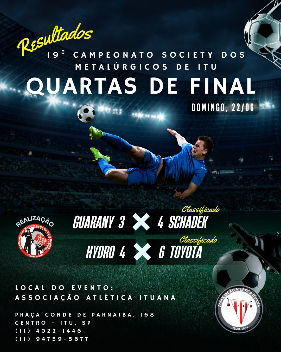 No último domingo, 22/06, ocorreram as quartas de finais do 19⁰ Campeonato Society dos Metalúrgicos de Itu de 2025!