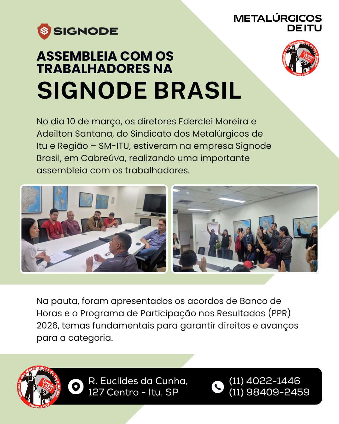 Horário de Atendimento da Secretaria do Sindicato de Itu