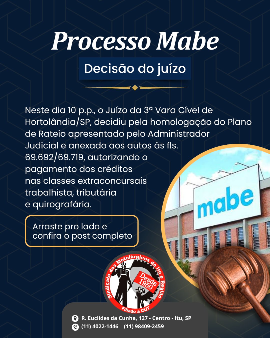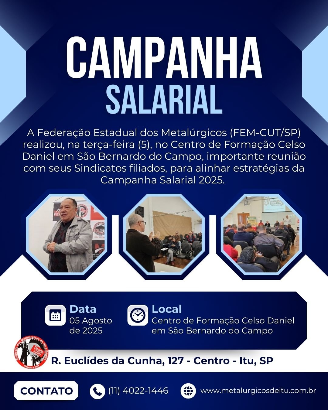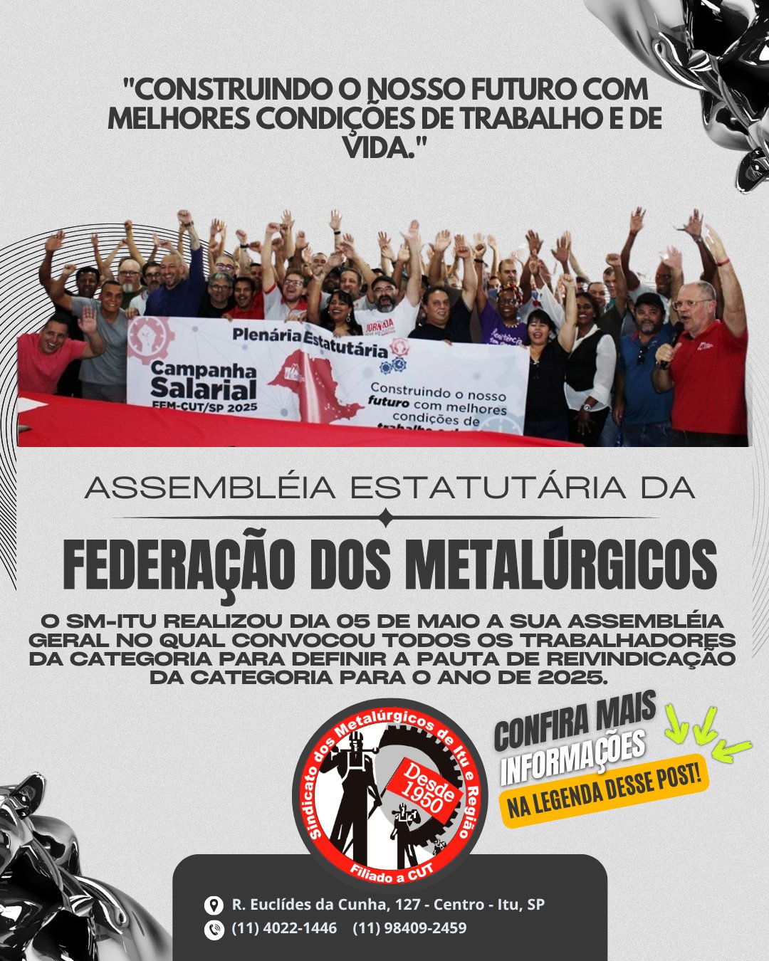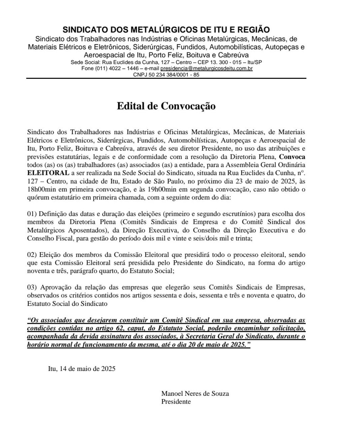 Entrar em contato na Sede em Itu, na Secretaria Geral, com Tiago: