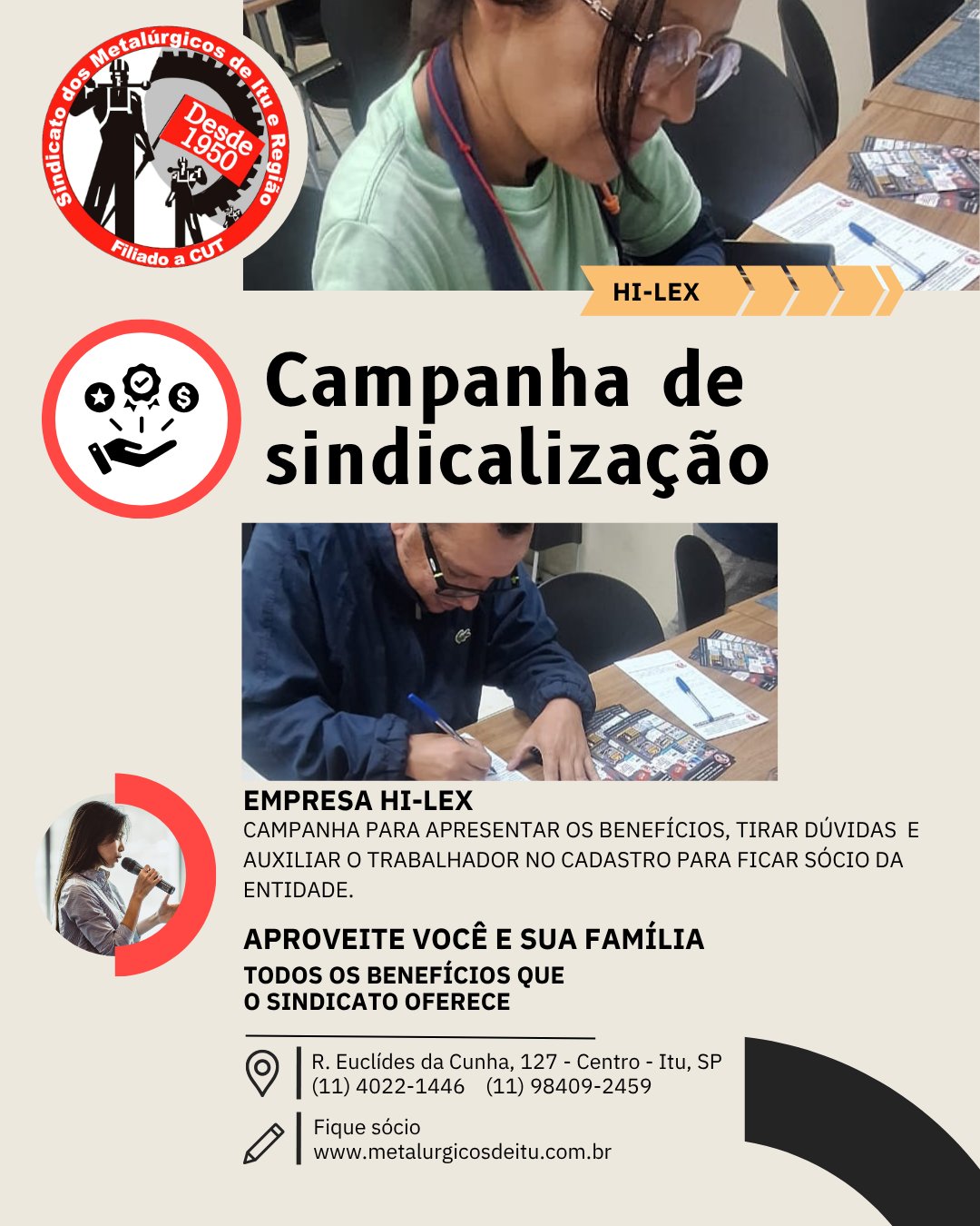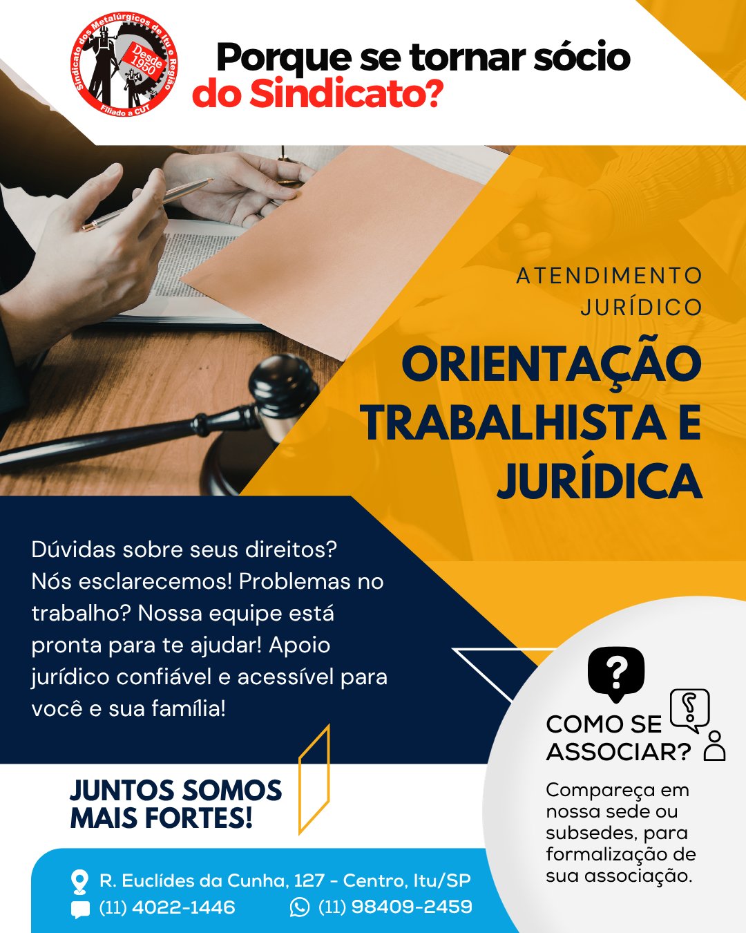 Após retirar a ficha, o associado(a) precisar ir no Sindicato de Itu e fazer o cadastro com os seguintes documentos: