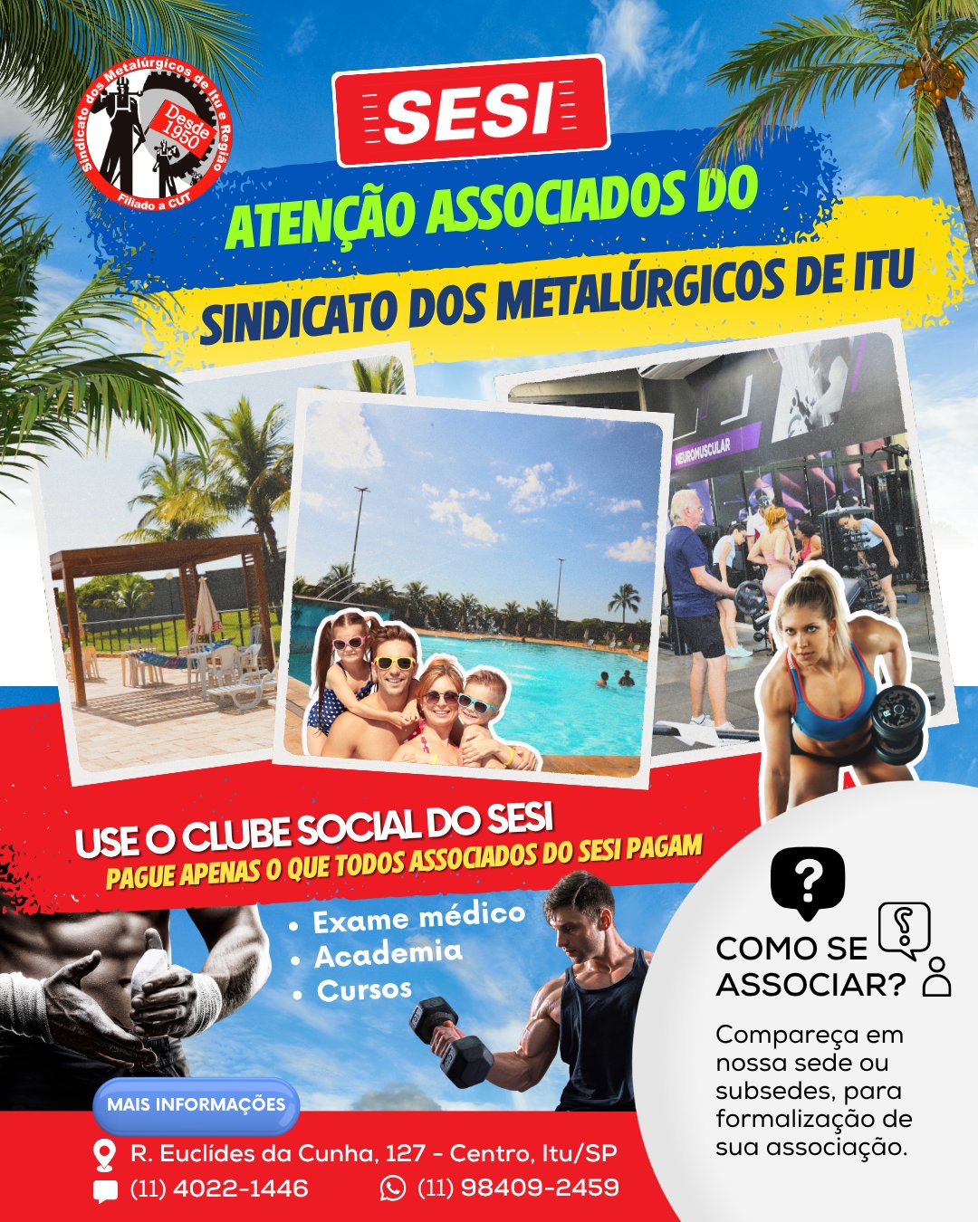 Associados podem utilizar o SESI de Itu e de todo estado de São Paulo sem precisar pagar a mensalidade que atualmente é cobrada do Plano Básico ou Total